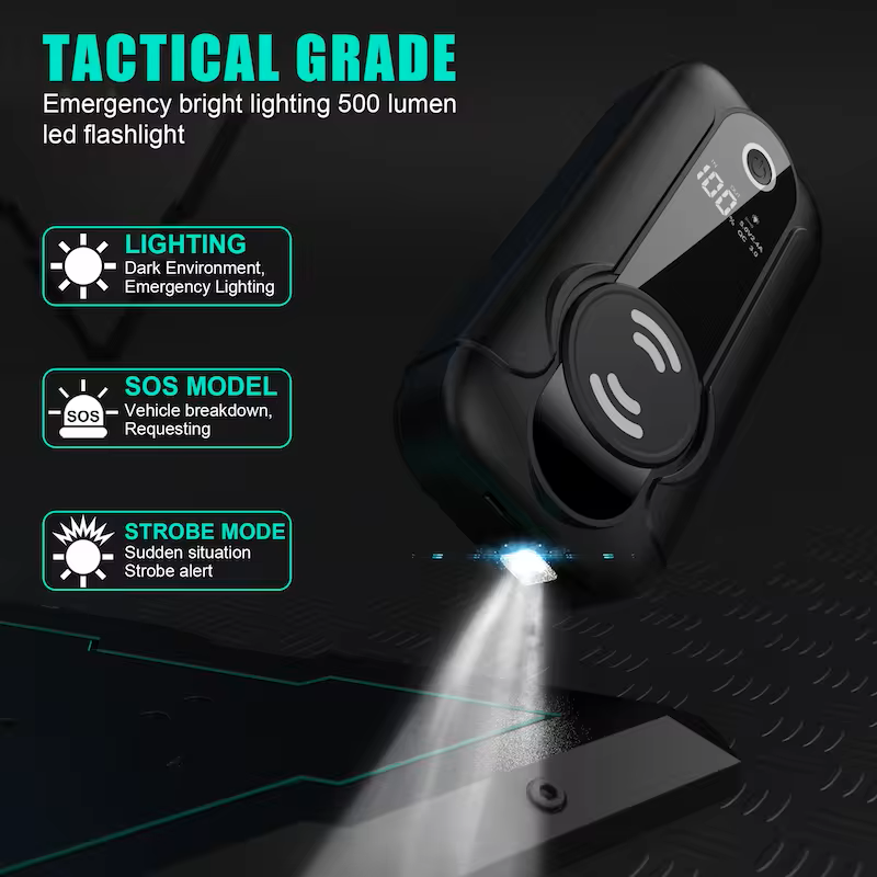 Iluminare de urgență: Majoritatea starterelor portabile vin echipate cu lanterne LED incorporate, care pot fi folosite în caz de urgență pe timp de noapte sau pentru reparații la vehicul în condiții de lumină scăzută.