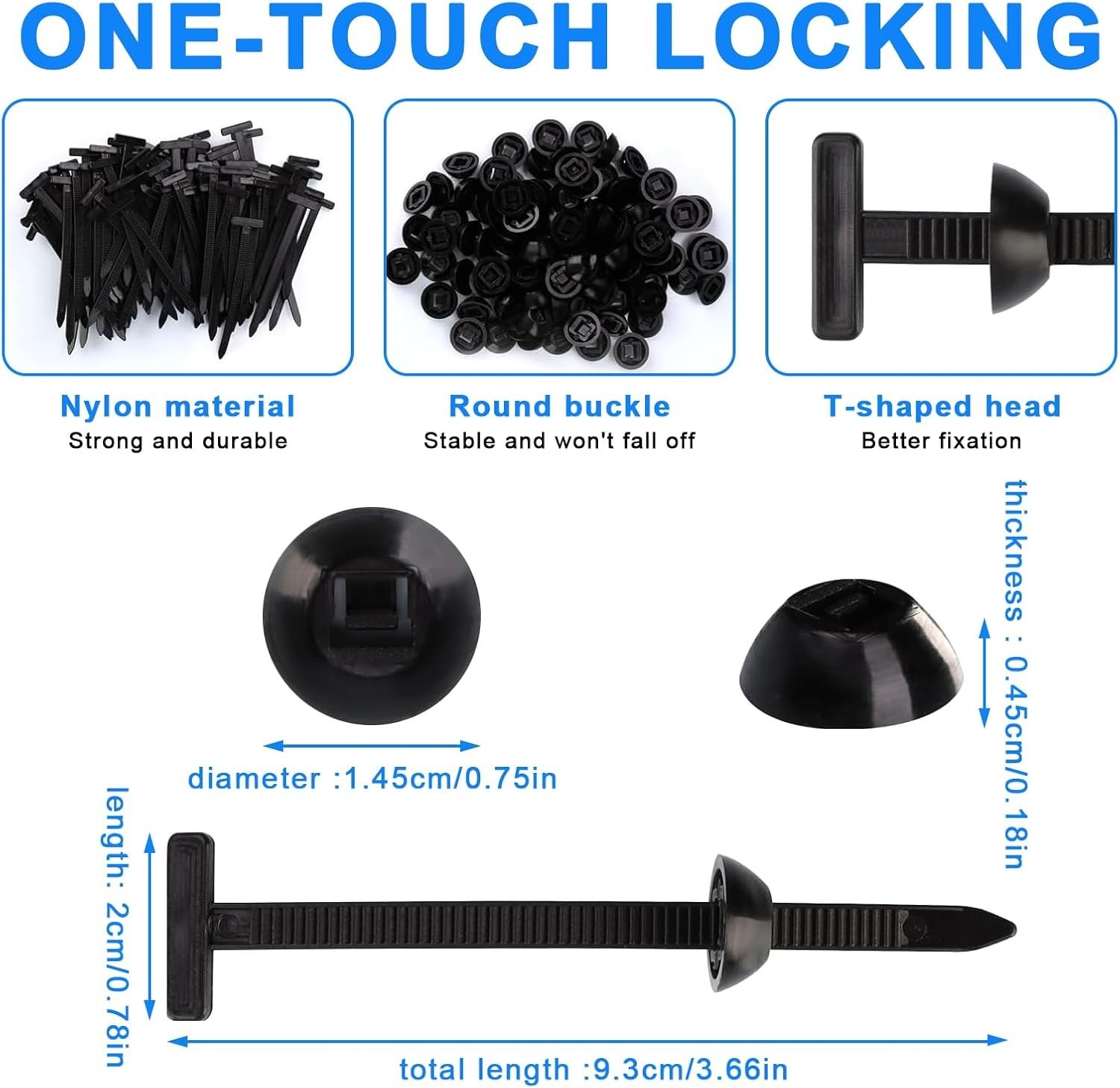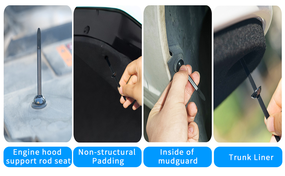 Compatibilitate universală pentru 90% dintre modelele de mașini: Spuneți adio șuruburilor lipsă și panourilor slăbite! Această cataramă de cablu din nailon este compatibilă cu majoritatea vehiculelor și se potrivește aripilor, apărătoarelor antistropi ale motorului, căptușelilor portbagajului, barelor de protecție și multe altele.